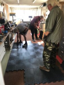 Grant funding has been sought to upgrade the electrical circuits (to include safety cut-outs for the workshop and additional sockets) and to lay rubber flooring. The outcome of this is awaited. Our core members have been busy making new wooden steps and handrails to access the portacabins safely and are continuing to sort out tools and equipment.