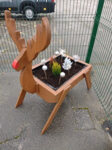 A Rudolph the Reindeer planter, donated by a local resident, was refurbished and delivered to the Primary School in time for the festive season.